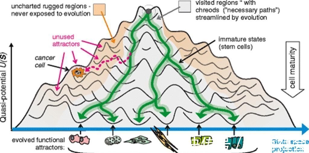 我们对干细胞的再生能力,实际上,实验室科学家有一个充分的认识,干细胞好比在山顶上的一个雪峰的流水,它会沿着山谷,朝向不同的细胞进行流动。